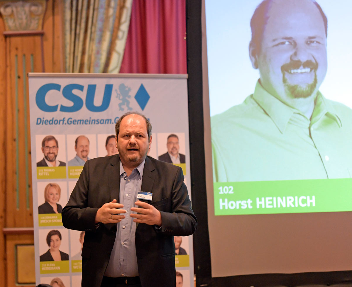 CSU Ortsvorsitzender Horst Heinrich beendetet die Veranstaltung mit einem Zukunftsausblick für Diedorf und hofft, dass trotz der Klammen Finanzen von den offenen ca. 85 Projekten in ganz Diedorf mehr umgesetzt werden kann als in den letzten Jahren.